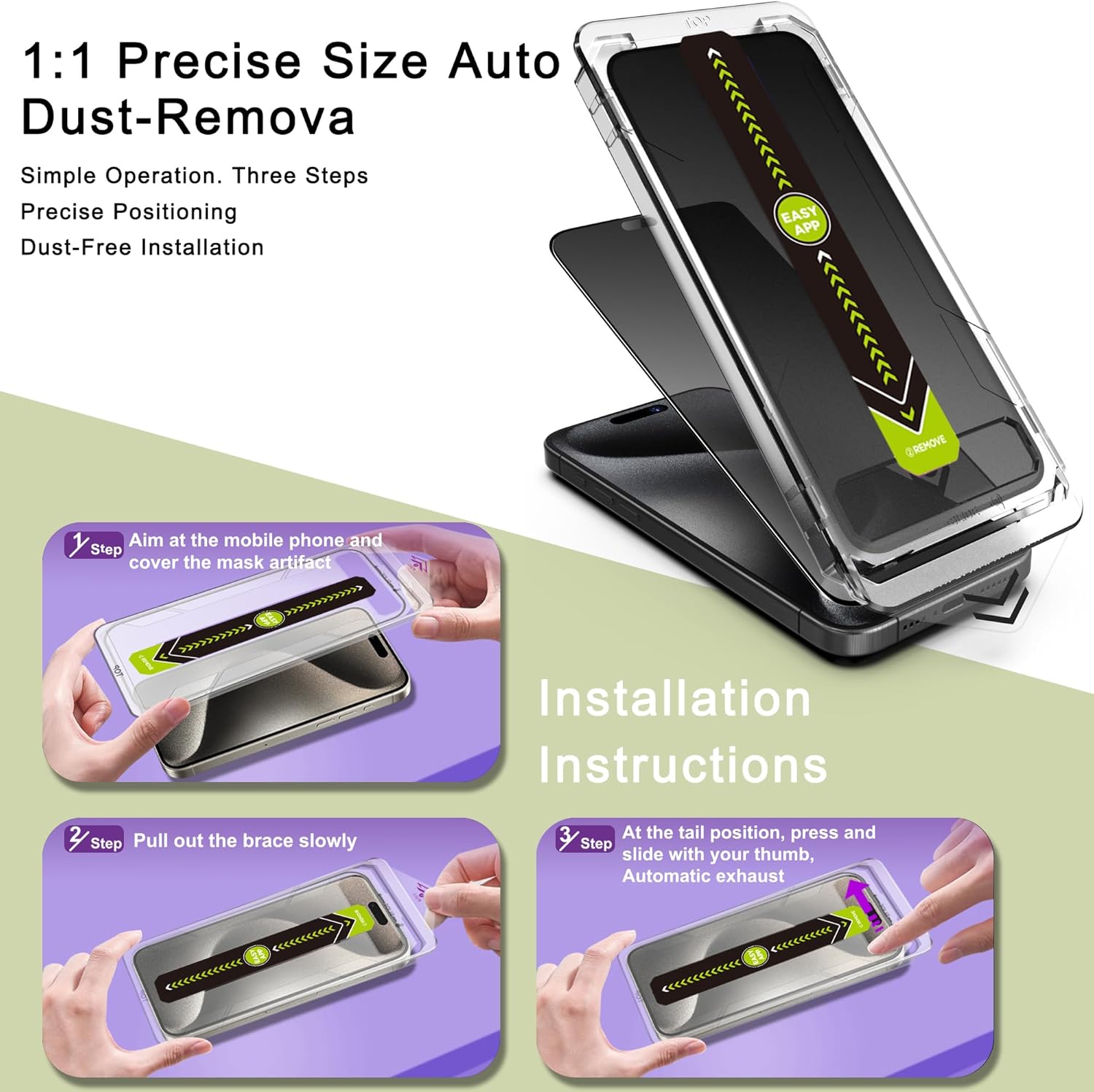 - Auto Dust Removal & Easy Installation: The SY SHANGYAN Matte Privacy Anti-Spy Screen Protector for iPhone 14 Pro/15/16 features advanced auto dust removal and self-aligning technology for a flawless,bubble-free install every time.Just place the frame,pull the tab,and press to push out any air bubbles.Installation is quick,easy,and hassle-free.For best results,watch our step-by-step installation video before applying