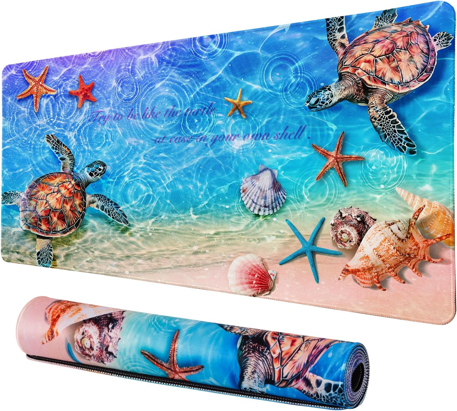 - Teal Sea Turtle Desk Pad: 31.5x15.7 inch mouse pad provides ample room to fit your gaming mouse, full-size mechanical keyboard, and other desk items, to keep your desk neat and clean. Made of heat resistant high density textured rubber which protects your desk from scratches, stains, spills and scuffs.